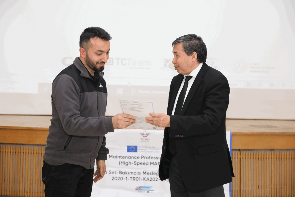 TCDD Taşımacılık A.Ş. Genel Müdür Yardımcısı Erol Arıkan’ın konuşmalarının ardından, proje kapsamında gerçekleştirilen belgelendirme sınavı sonrasında belgelerin dağıtımı ve ardından plaket töreni ile kapanış toplantısı tamamlandı.