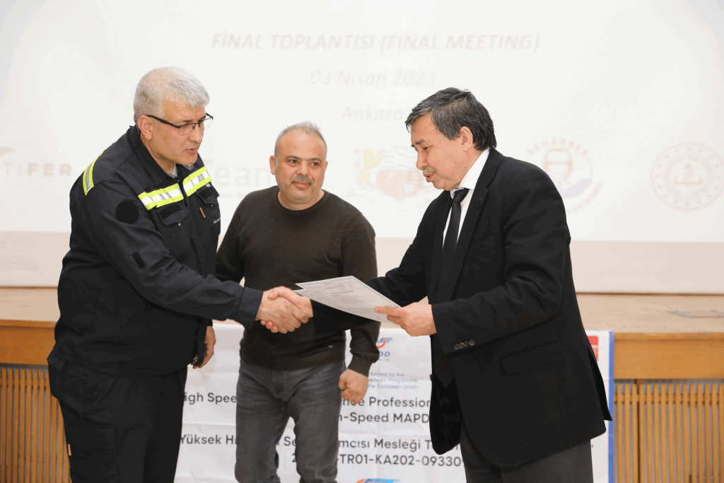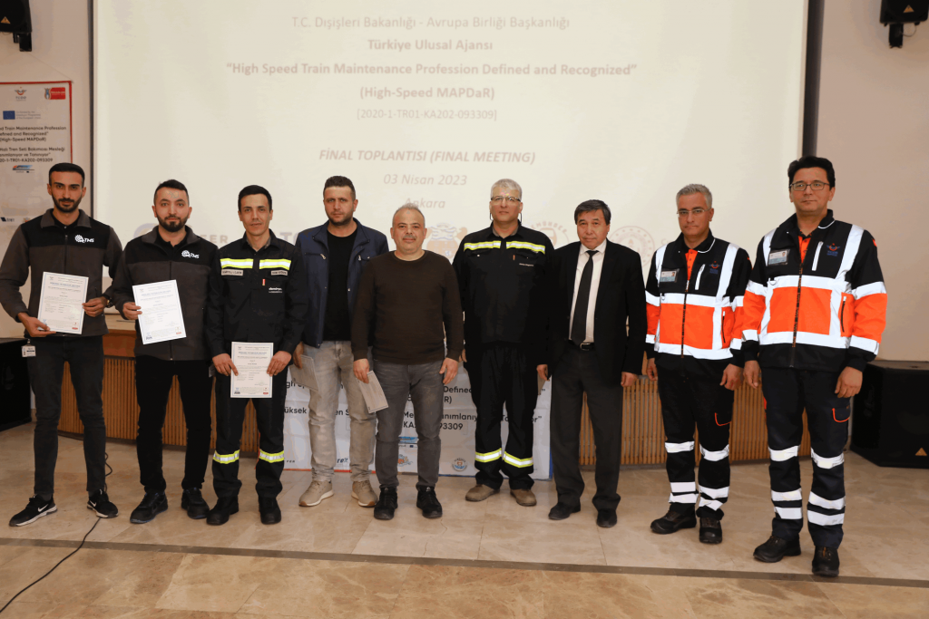 Proje ortağı olduğumuz High-Speed MAPDaR (Yüksek Hızlı Tren Bakımcısı Mesleği Tanımlanıyor ve Tanınıyor) projesinin kapanış toplantısı tüm proje ortaklarının katılımı ile 3 Nisan 2023 tarihinde Ankara’da Behiç Erkin Konferans Salonunda gerçekleştirildi.